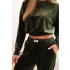 Materiál je měkký, příjemný na dotek a jemně lesklý, což dodává celku elegantní charakter. Komplet se skvěle hodí po celý rok – jak v chladnějších dnech, tak na jaře nebo na podzim.